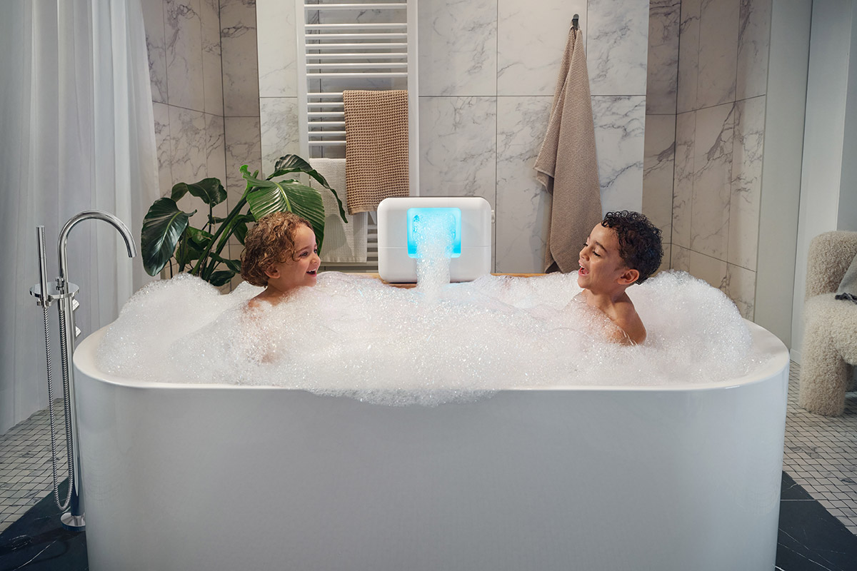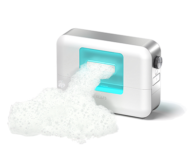 Das akkubetriebene ESPURO® CloudSPA lässt sich flexibel in der Dusche, über der Badewanne oder an jedem anderen Lieblingsplatz zur Entspannung aufstellen. Binnen Sekunden entstehen luftig-weiche Schaumwolken von bis zu 400 l/min.
